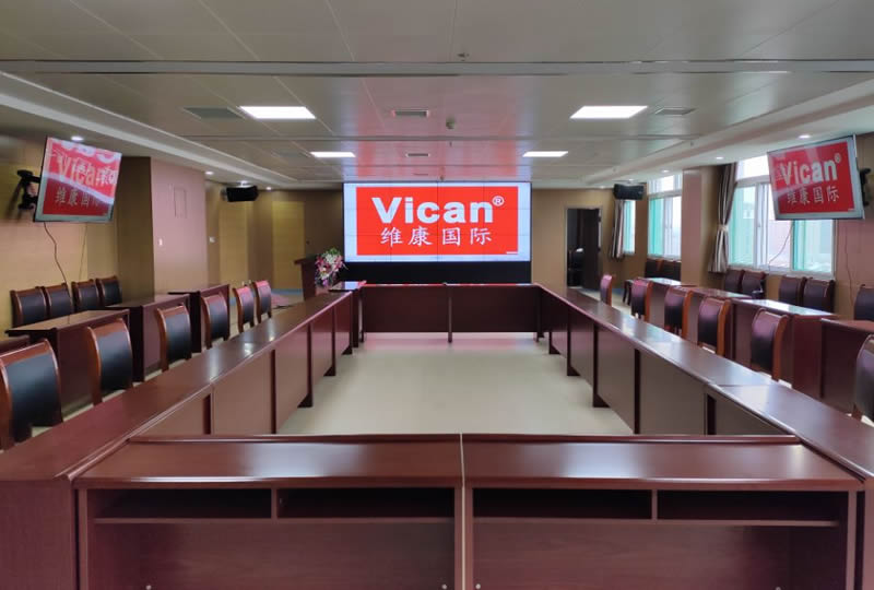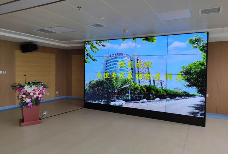 濰坊醫(yī)學(xué)院眼科中心這套大屏采用4x4拼接、55寸3.5mm液晶拼接屏,用于會議信息顯示。