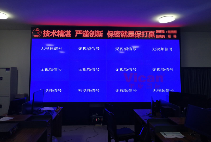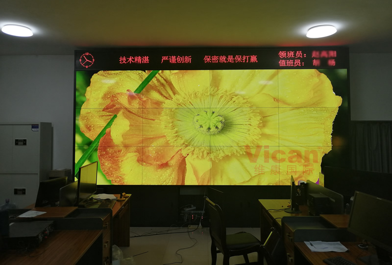 維康國(guó)際為河南某部隊(duì)提供的這套會(huì)議大屏,采用3行4列、55寸液晶拼接屏,產(chǎn)品性能穩(wěn)定,超窄邊設(shè)計(jì),雙邊拼縫僅有0.88mm,如上圖所示,有著很好的畫(huà)面一體化顯示效果。