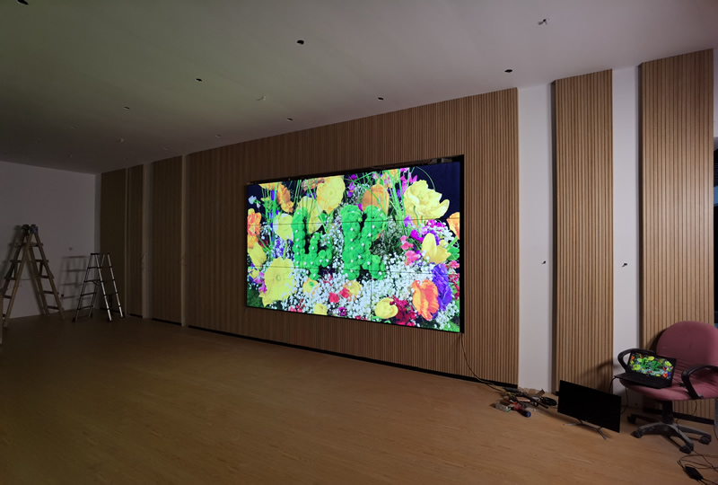 該案例是維康國(guó)際為廣西北海全友家居提供的有一套展廳LCD拼接屏,采用3行3列的55寸液晶拼接屏,雙邊拼縫為3.5mm,如上圖所示,畫面顯示清晰亮麗,拼縫較小,有著較好的大屏畫面一體化顯示效果。