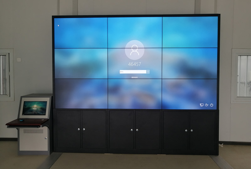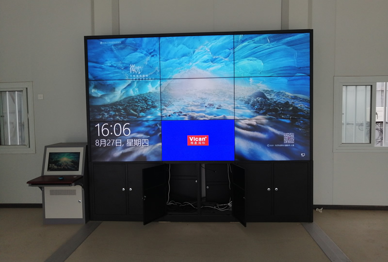 該案例中,維康國際為廣州中建三局項目部提供一套會議大屏,采用3行3列、55寸液晶拼接屏,機柜式安裝,畫面清晰、一體化顯示效果好。