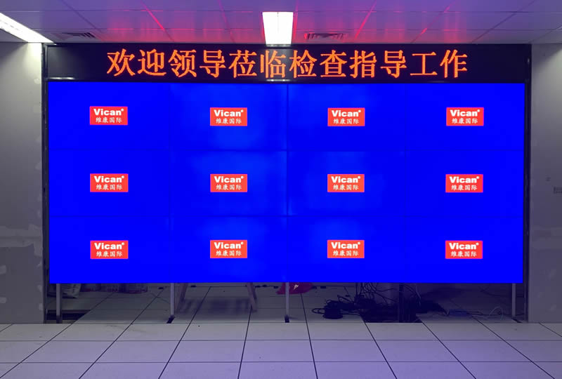 這套大屏幕顯示設備采用3x4拼接、55寸液晶拼接屏,雙邊拼縫為3.5mm,畫面清晰亮麗,主要來信息顯示與發(fā)布。