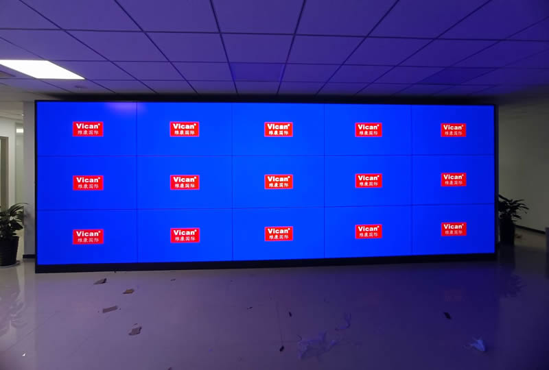 本案例中,維康國(guó)際為濟(jì)寧市汶上縣某學(xué)校提供一套會(huì)議室大屏,采用3行5列、55寸液晶拼接屏,雙邊拼縫為3.5mm,大屏幕顯示清晰、一體化顯示效果較好,圖上圖所示。