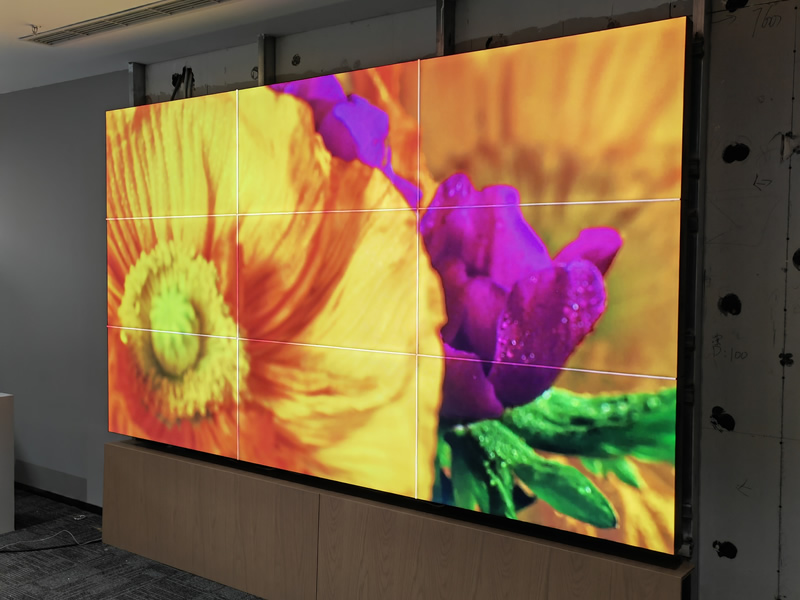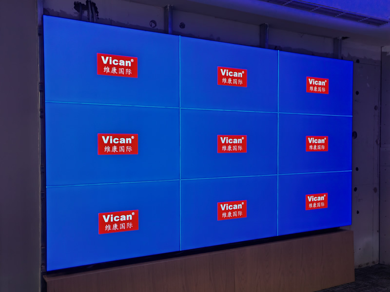 本案例中,維康國(guó)際為北京家宅融智科技有限公司提供了一套高清無(wú)縫大屏,由3行3列、46寸電子無(wú)縫拼接屏組成,如上圖所示,大屏幕畫(huà)面的一體化顯示很好,沒(méi)有黑色邊框的影響,可以展現(xiàn)出更好的視覺(jué)效果。