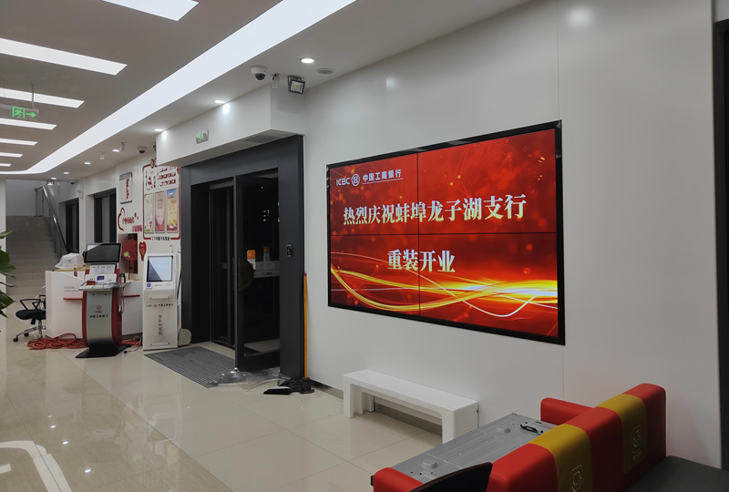 本案例中,維康國(guó)際為蚌埠市龍子湖支行提供了一套商顯拼接屏,大屏幕畫面顯示清晰,分辨率高,具有很好的視覺體驗(yàn)效果。