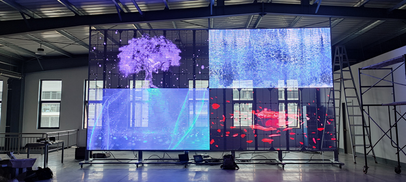 本案例中,維康國際為天健水務(wù)集團(tuán)提供一套LED透明屏,面積為32平方米,可移動使用。