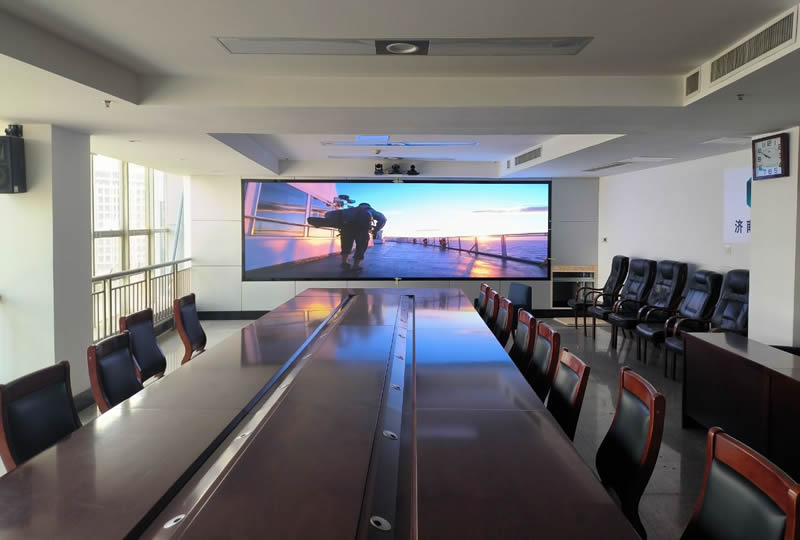 本案例中,維康國際為濟(jì)南市高新區(qū)管理委員會提供了一套會議室LED大屏,如上圖所示,大屏幕顯示清晰,亮度適中,一體化顯示效果好。