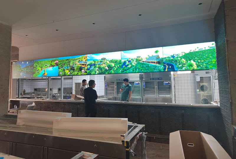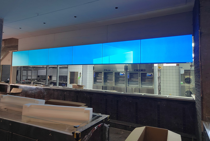 深圳市某企業(yè)食堂櫥窗提供一套顯示大屏,采用1*6拼接、55寸液晶拼接屏組成,如上圖所示,屏幕顯示清晰,視覺效果好。