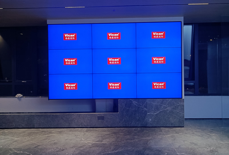 本案例中,維康國(guó)際為深圳南山某公司提供一套現(xiàn)代展廳顯示大屏,由于3*3拼接、55寸液晶拼接屏組成,采用1.7mm小拼縫款式,大屏幕顯示清晰,視覺(jué)體驗(yàn)效果好。