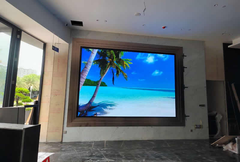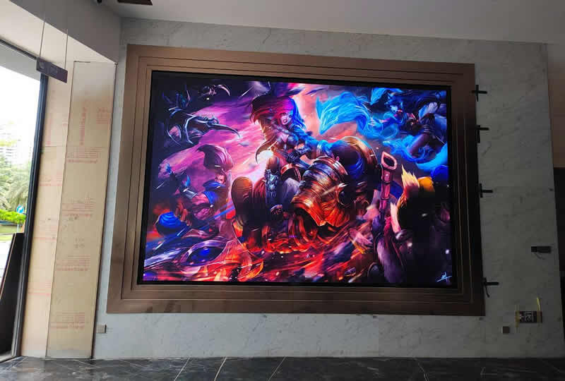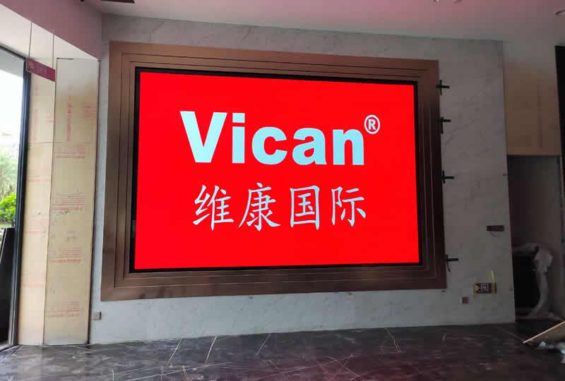 本案例中,維康國(guó)際為海南陵水某寫(xiě)字樓大廳提供了一套展示大屏,采用P2全彩LED顯示屏,面積為10平方左右,大屏幕顯示清晰,色彩鮮艷,視覺(jué)體驗(yàn)效果較好。