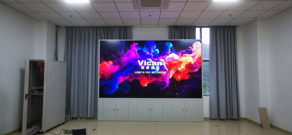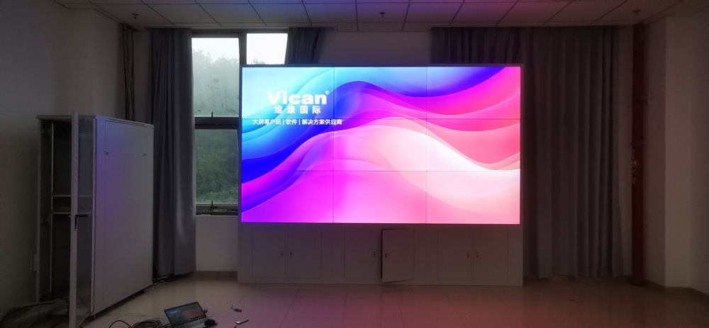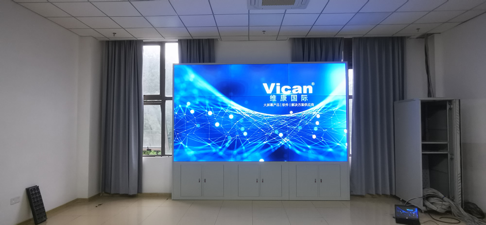 該項目中,維康國際為深圳市某企業(yè)提供了5套高清液晶大屏,采用0.88mm拼縫的高清晰液晶拼接屏,3x3拼接方式,高清畫質(zhì),超小拼縫,大屏幕畫面一體化顯示效果很好。
