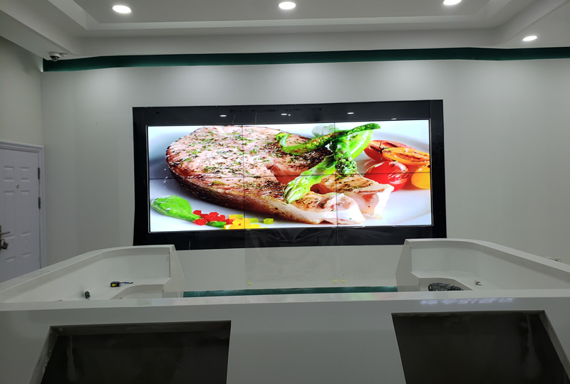 該大廳采用2x3拼接、55寸液晶拼接屏,LG原裝面板、拼縫為1.8mm,大屏畫面清晰亮麗,拼縫非常小,對畫面一體化顯示造成的影響很小,如上圖所示。