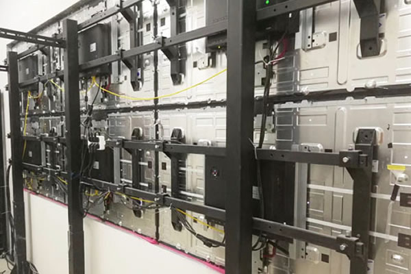 拼接屏在安裝時考慮到安裝方式與安裝空間的限制,只能在前面進行安裝及以后的檢修,多見于壁掛安裝、支架等安裝中,如果超過9塊屏拼接,考慮到后期的檢修與拆卸,常常推薦前維護液壓支架進行安裝。也就是在壁掛支架的前面增加一個可前后彈出的支架,再把拼接屏安裝在上面。這樣我們就可以輕輕一推,拼接屏就會自動彈出,方便技術人員進行拆卸以及更換屏體等工作。