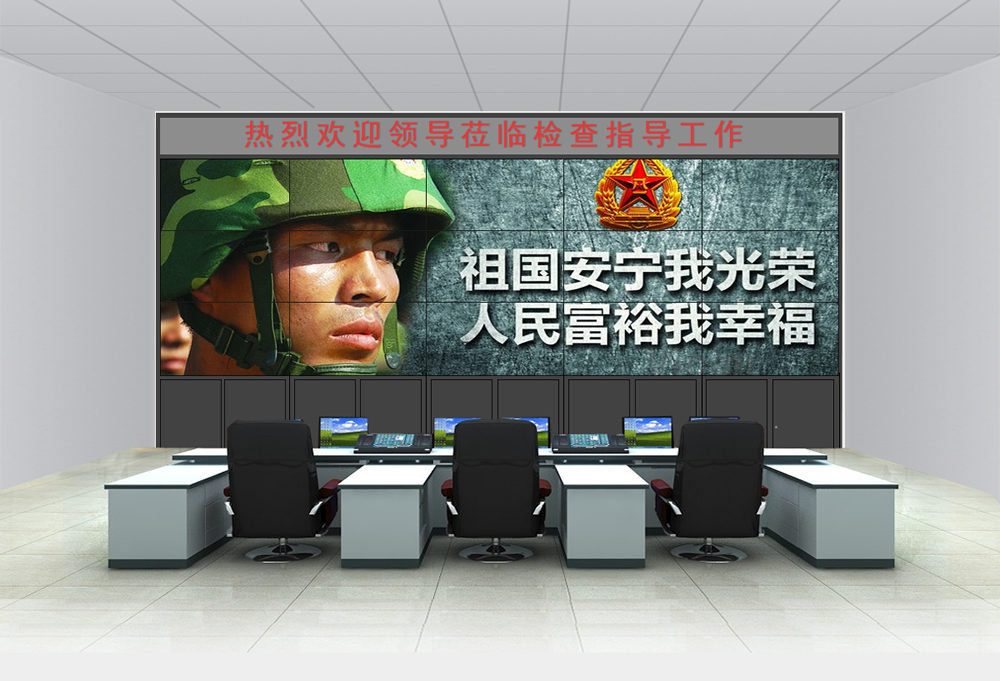 3行5列49寸監(jiān)控拼接屏效果尺寸圖,機(jī)柜式+LED條屏