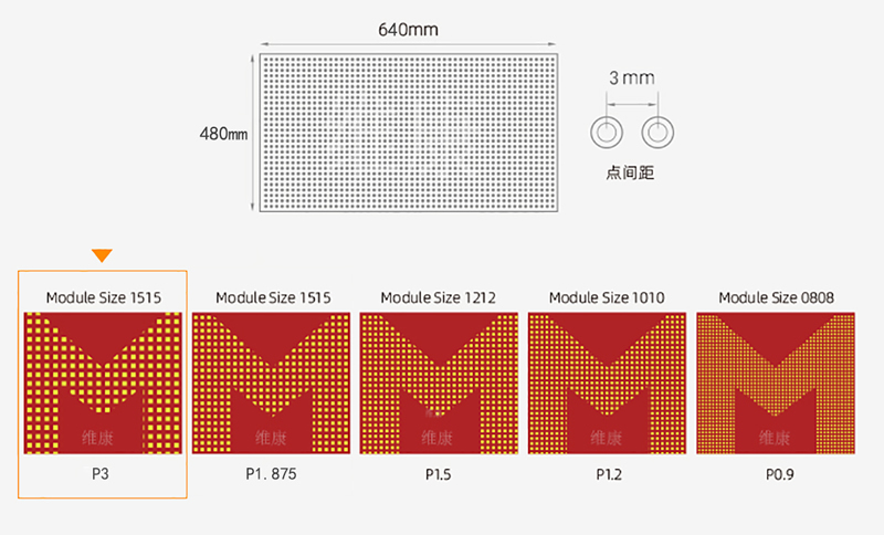 模組參數(shù) | 像素點間距(mm) | 3mm |