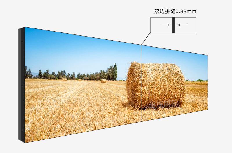 46寸拼接屏0.88mm指的是雙邊物理拼縫為0.88毫米的拼接屏,采用46寸的原裝面板組成,超小拼縫,視覺(jué)體驗(yàn)效果更好。