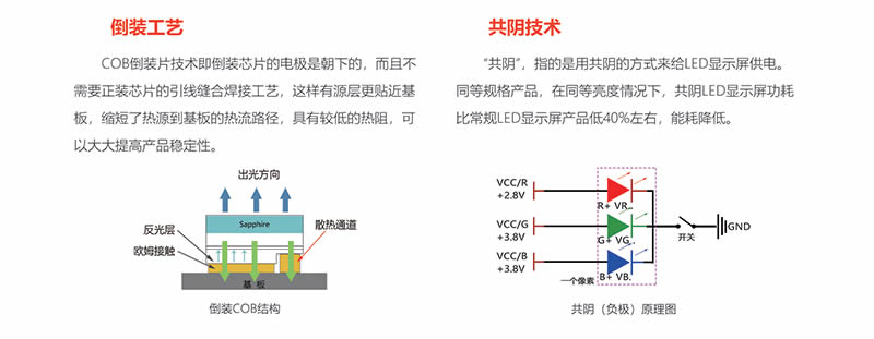 全倒裝工藝配套共陰方案,穩(wěn)定性好,低耗節(jié)能