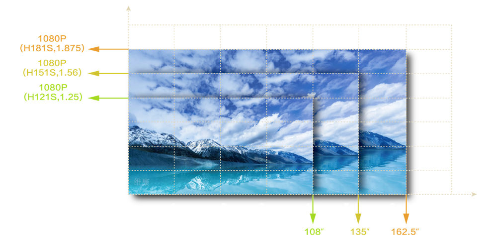 采用16:9的比例設(shè)計能輕松拼接實現(xiàn)FHD/2K/4K分辨率,輸入分辨率與顯示分辨率點對點,使顯示畫面能夠完美的匹配呈現(xiàn)16:9片源 。播放視頻時無扭曲,變形,模糊現(xiàn)象。
