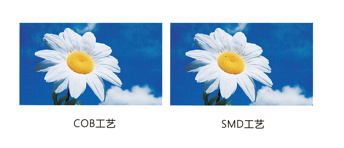 COB工藝相對于SMD的工藝的LED屏,防護(hù)性能級別更高。可防水、防磕碰、防潮、防撞擊、防氧化、防鹽霧防靜電、易清洗等優(yōu)點,大大減少了產(chǎn)品在運輸、安裝和使用過程中因碰撞產(chǎn)生的死燈、接觸不良等問題。